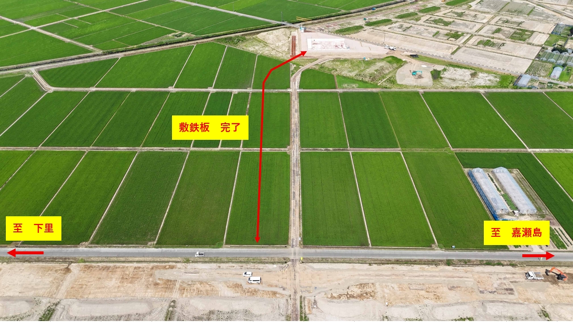 ファームポンド〜の仮設道路敷鉄板完了しました |