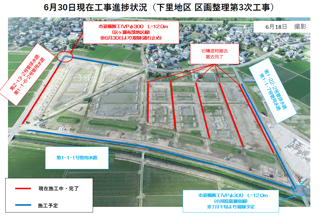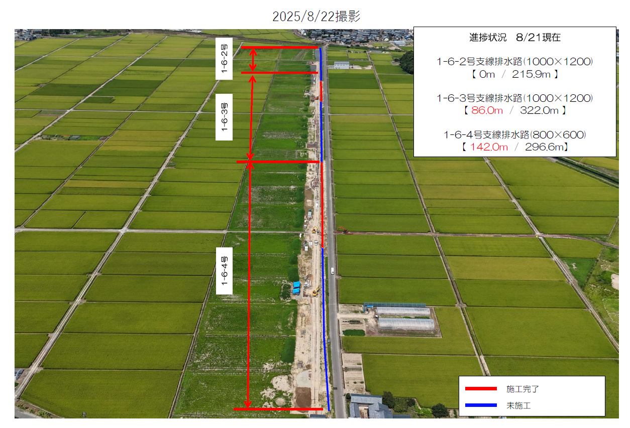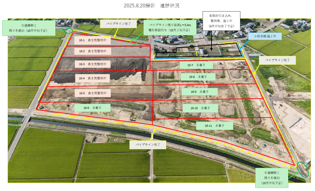 2025.6.30 現在 圃場整備工事は用排水路工を行っています。
